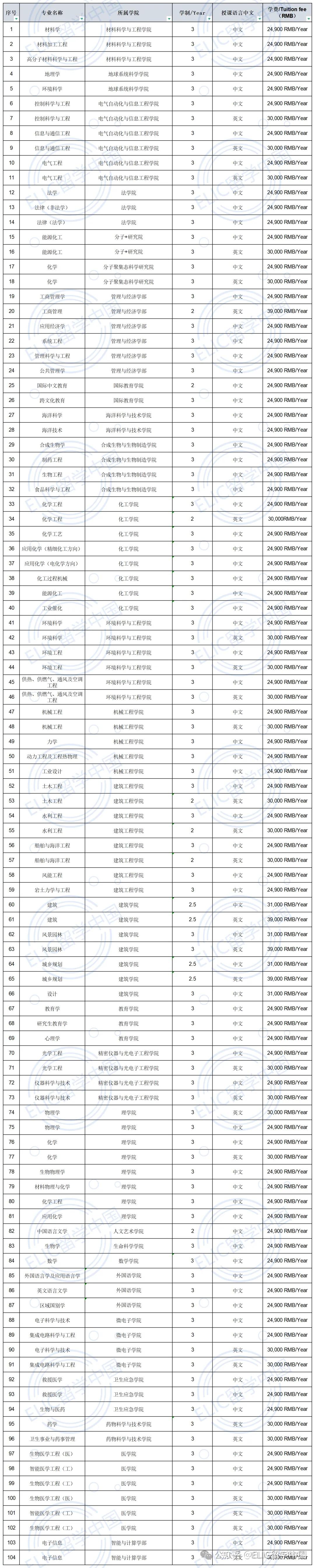 一般专业:24,900元(中文授课)/ 30,000元(英文授课)