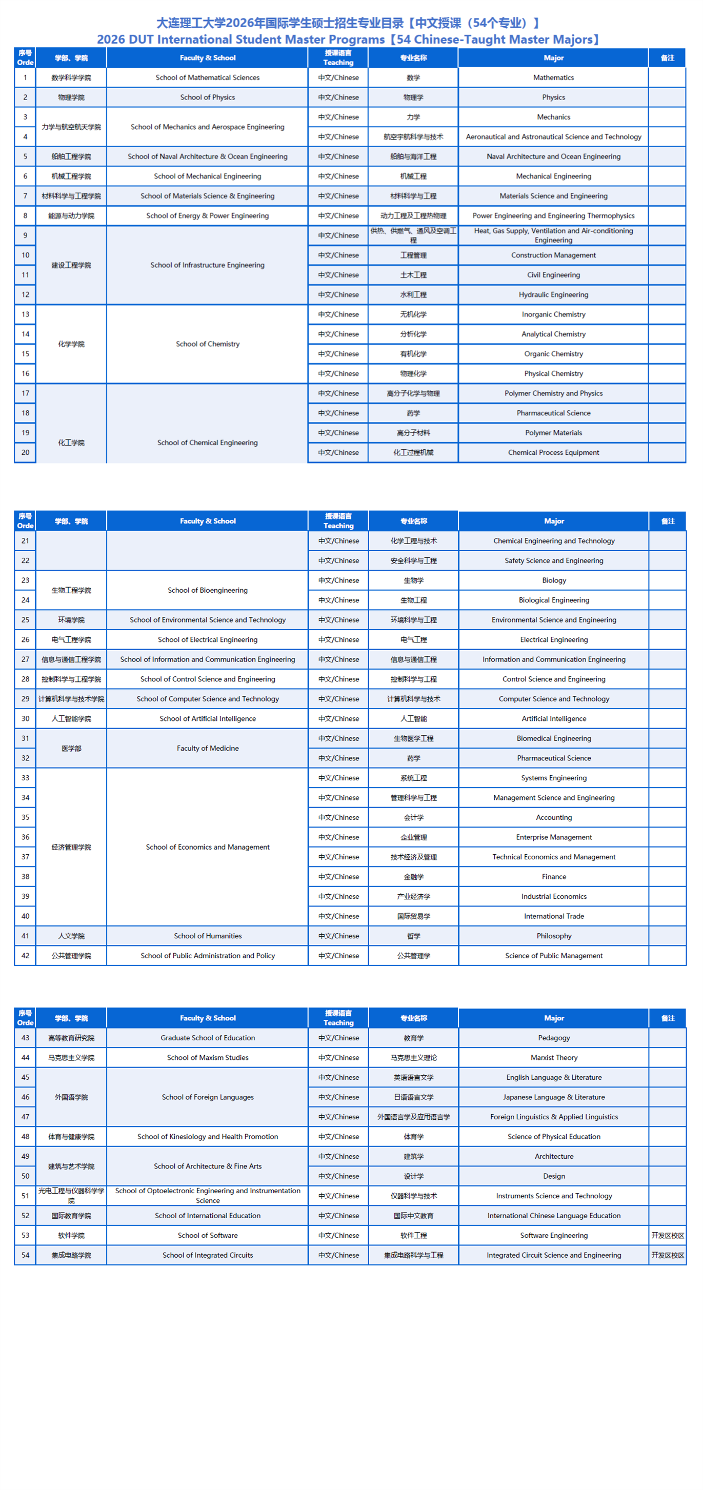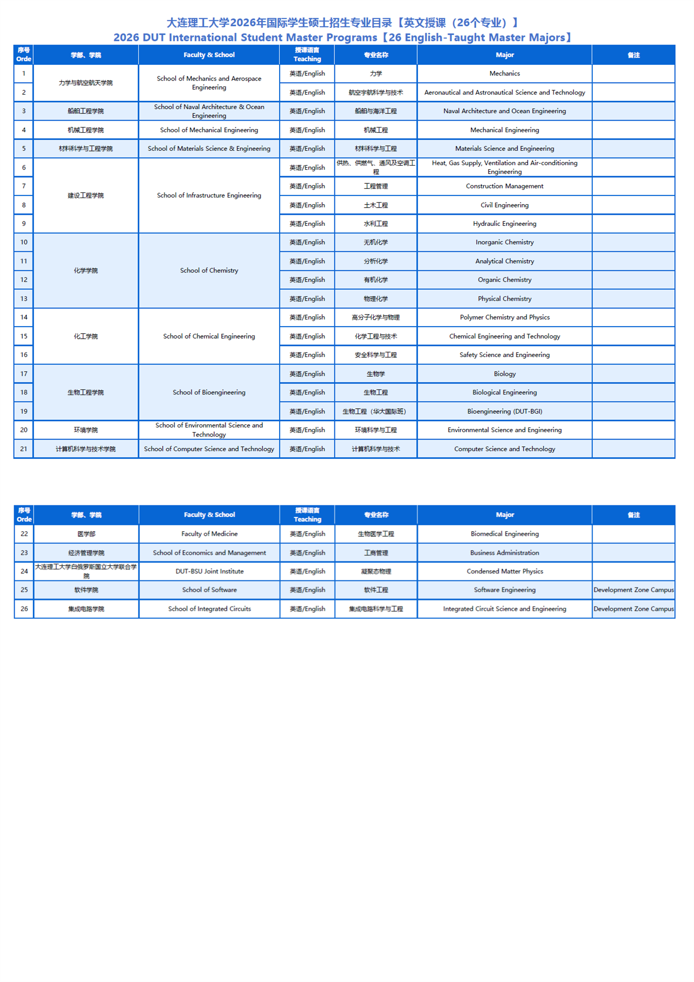 英语授课硕士(理工经管类专业)29,500人民币/年