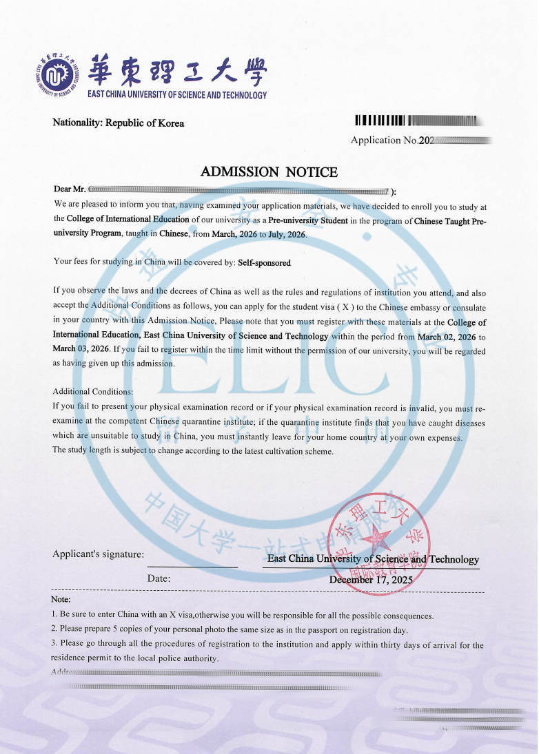 - 恭喜ELIC的一名韩国籍学生成功被哈尔滨工业大学录取! 2025.12.31