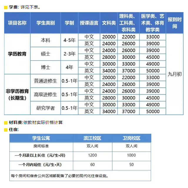 ☑住宿:免费在校住宿或发放住宿补贴,每年10,000元人民币;